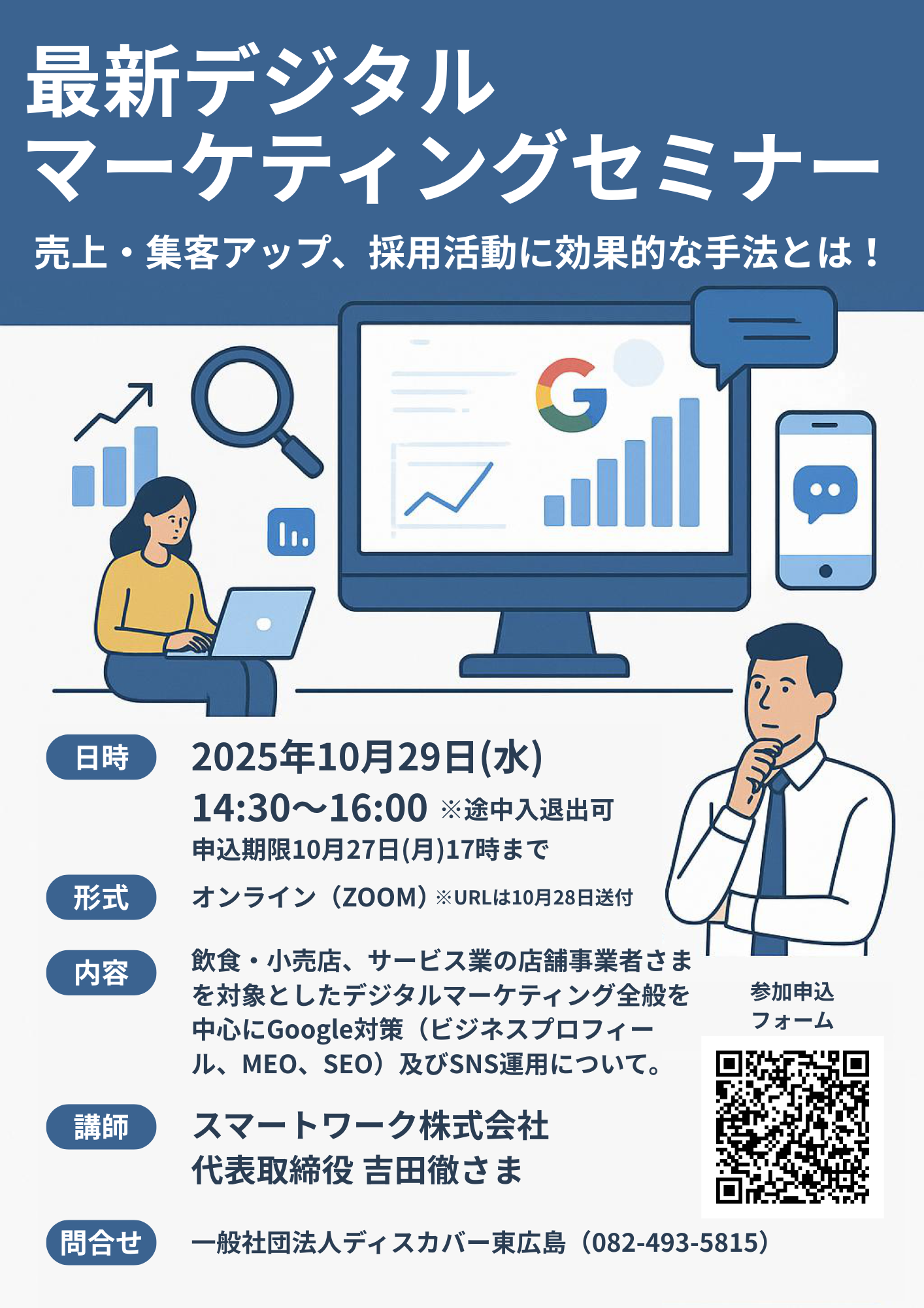 GoogleビジネスプロフィールやMEO・SEO対策、SNS運用など、今すぐ活かせる内容が満載です。ぜひお気軽にご参加ください!
