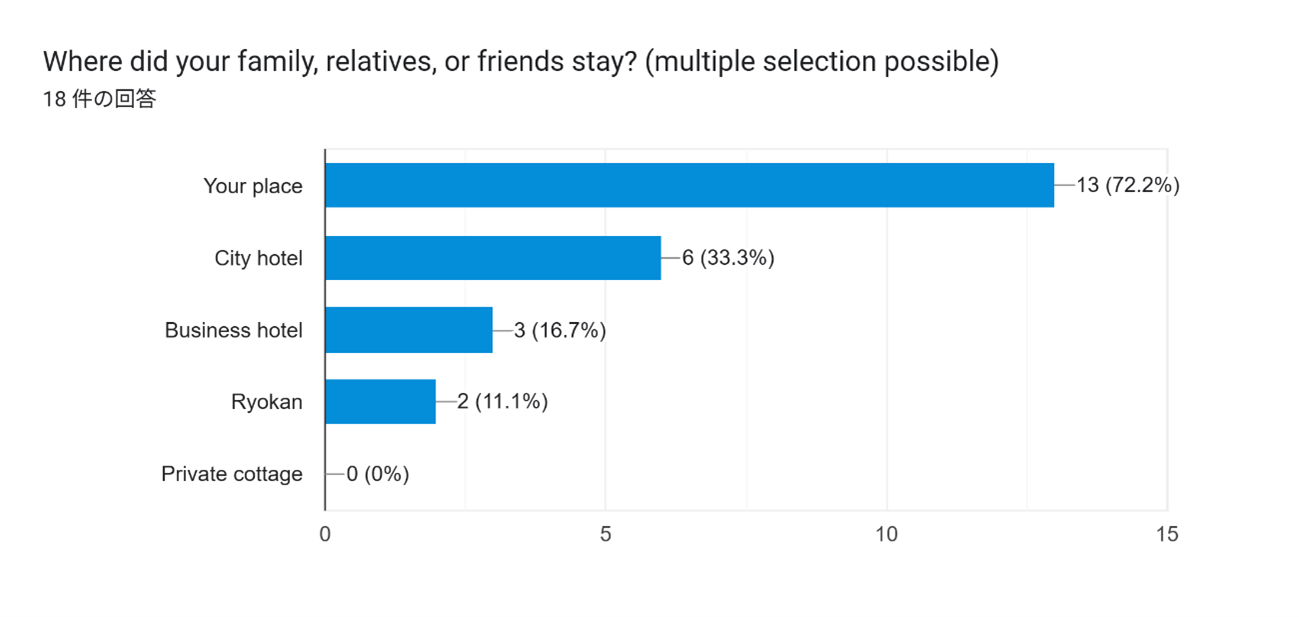 【設問3】ご家族や親戚、友人はどこに泊まりましたか?(複数選択可) (【設問1】で「Yes」と回答した方のみ)