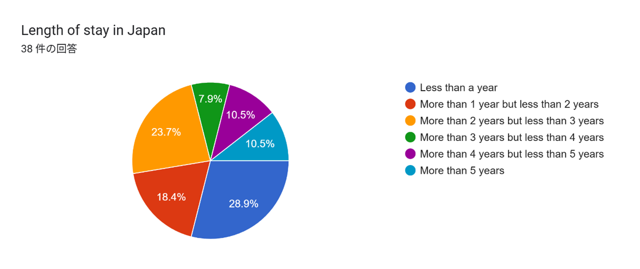 - 日本在住期間とのクロス集計から1年以上3年未満の層で、家族を呼び寄せる傾向が顕著に見られる(来訪があった回答者のうち、1年以上3年未満の滞在割合は38.9%)。