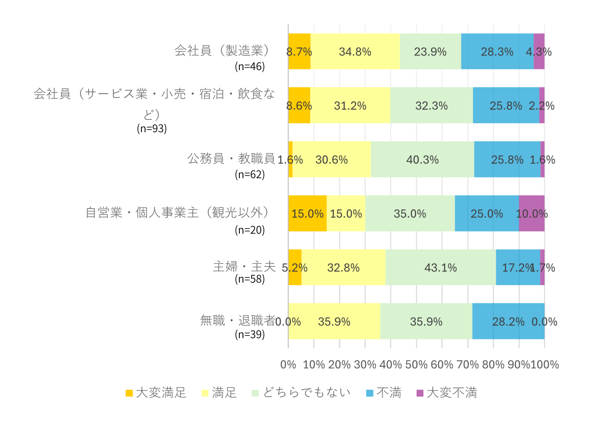 • 会社員(製造業)は、「満足・大変満足」が43.5%と最も高く、逆に「どちらでもない」の割合(23.9%)が最も低い